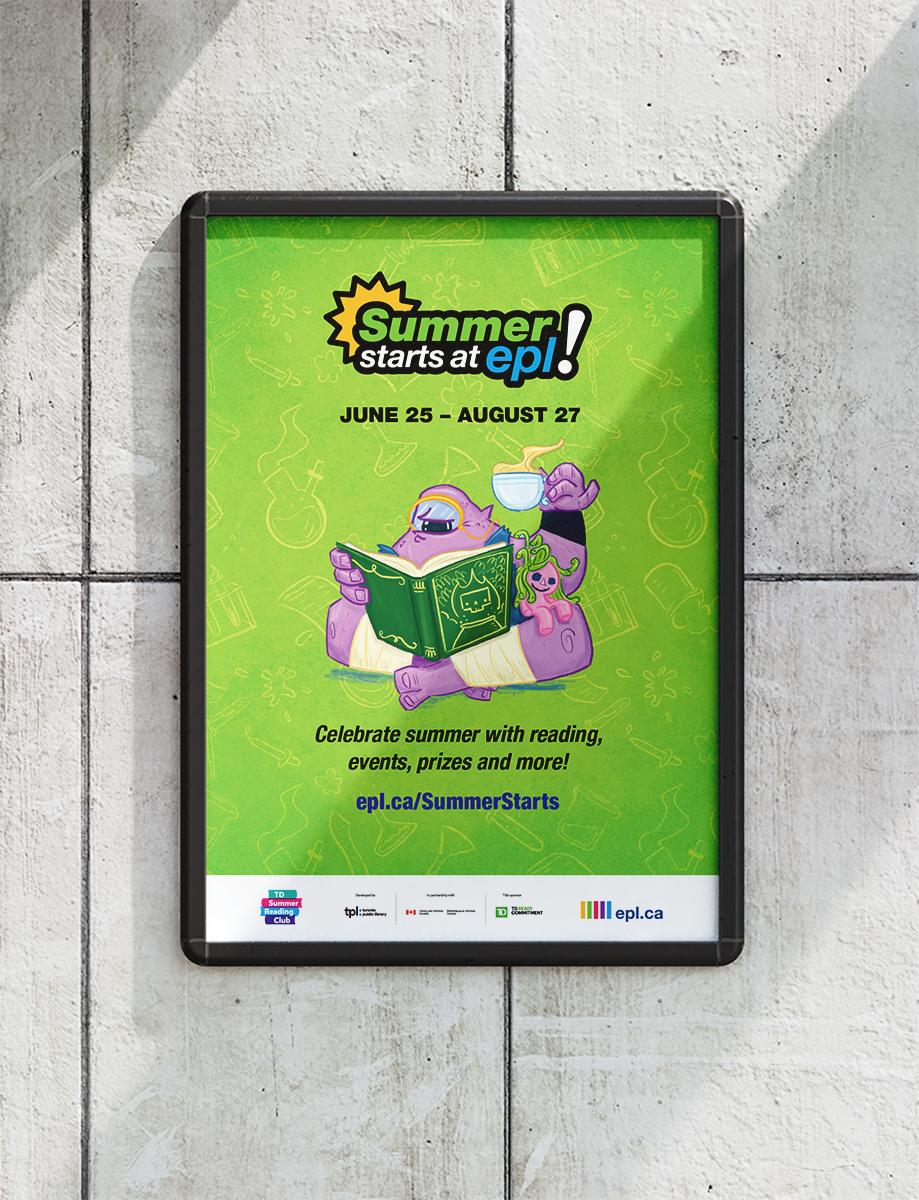 Summer Starts at EPL is an annual children's program in partnership with the TD Summer Reading Club—character illustrations by Rob Justus, 2022.